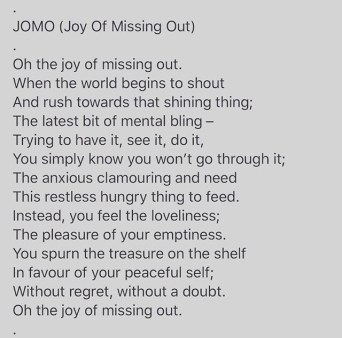 I do not suffer from FOMO (fear of missing out) but do love this: